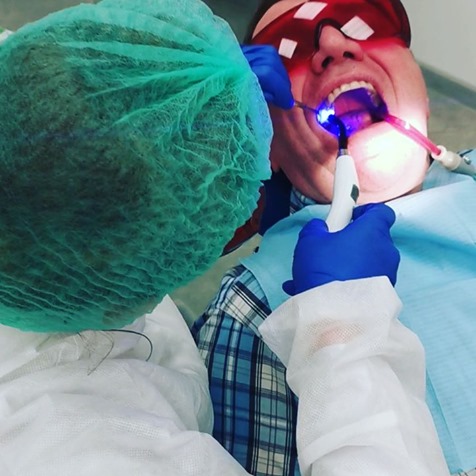 Отбеливание происходит воздействием струи абразивного средства на эмаль зубов. Для этой процедуры используют систему Air Flow.